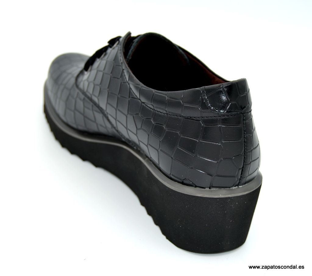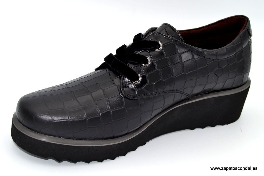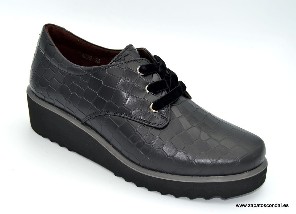 30´s Treintas modelo 4229-C. Zapato de piel grabado coco. Ajuste con cordones de terciopelo. Forro térmico textil. Plantilla confort extraible. Suela micro extra ligera con cuña de 4cm. Comodidad con estilo. Muy cómodos.