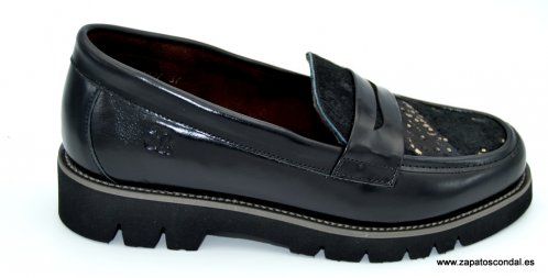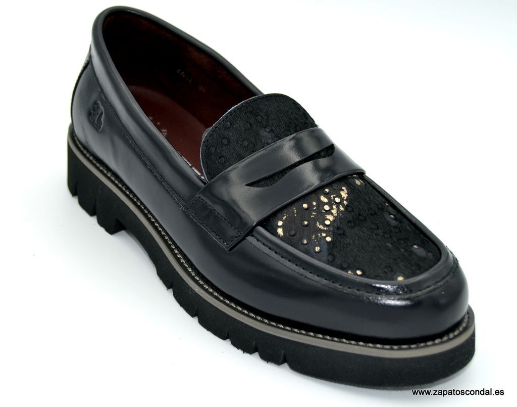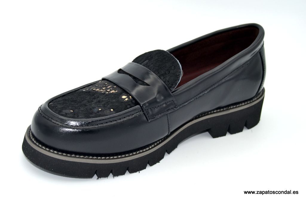 30´s Treintas modelo 4427. Zapato mocasín de piel con pala de potro con detalles metalizados. Forro térmico. Plantilla confort. Suela ligera antideslizante. Disponible en negro. Muy cómodos.
