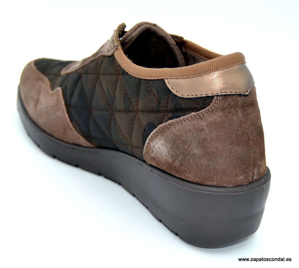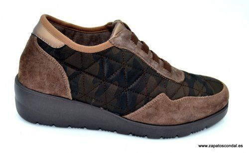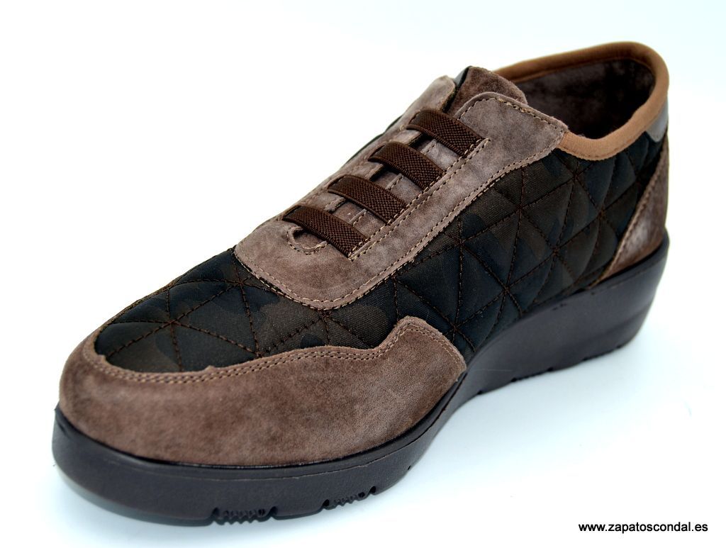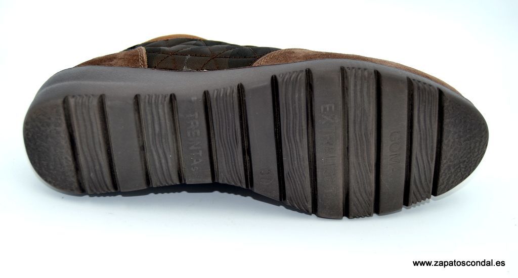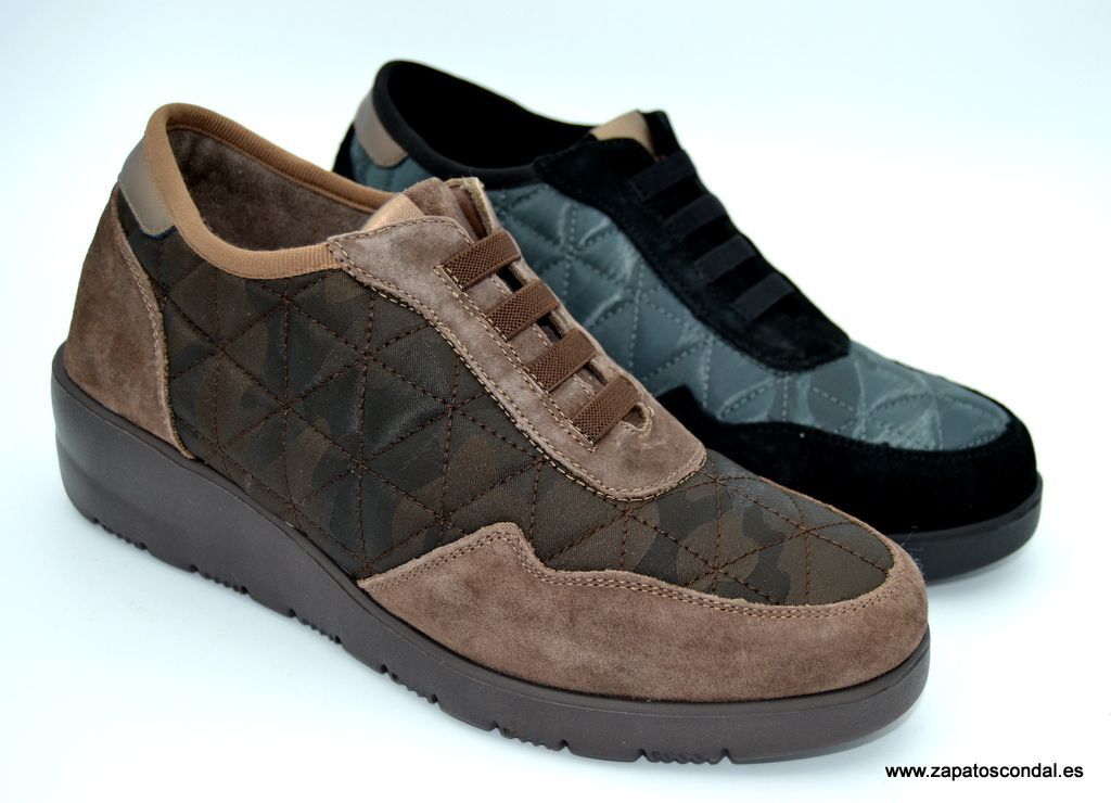 30´S Treintas modelo L-4053. Zapato deportivo con elásticos al empeine. Forro textil. Plantilla confort extraible. Suela de caucho muy ligera con cuña de 4,5cm. Muy cómodos. Disponibles en negro/gris y marrón/cuero.