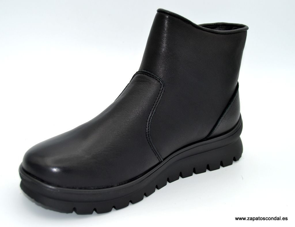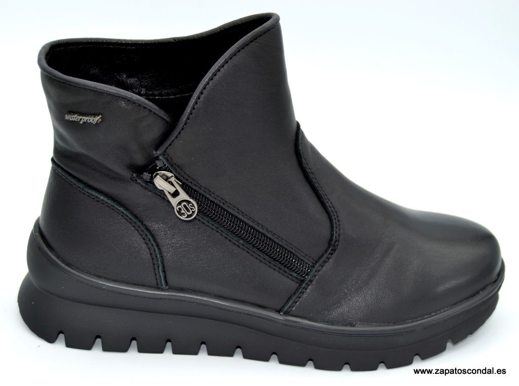 30´s Treintas modelo M-4463. Botín de piel con cremallera lateral. Forro térmico textil con membrana resistente al agua. Plantilla confort. Suela de caucho extra ligera. Piel de gran calidad. Disponible en negro. Muy cómodas.
