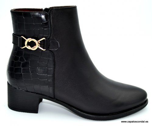 30´S modelo 4222. Botín de piel con cremallera lateral. Suela de caucho antideslizante. Tacón de 3,5cm. Trasera en piel grabada. Forro textil térmico. Horma confort. Disponible en negro.