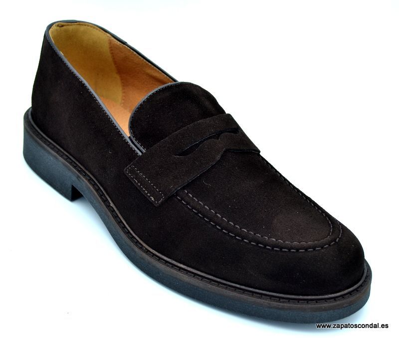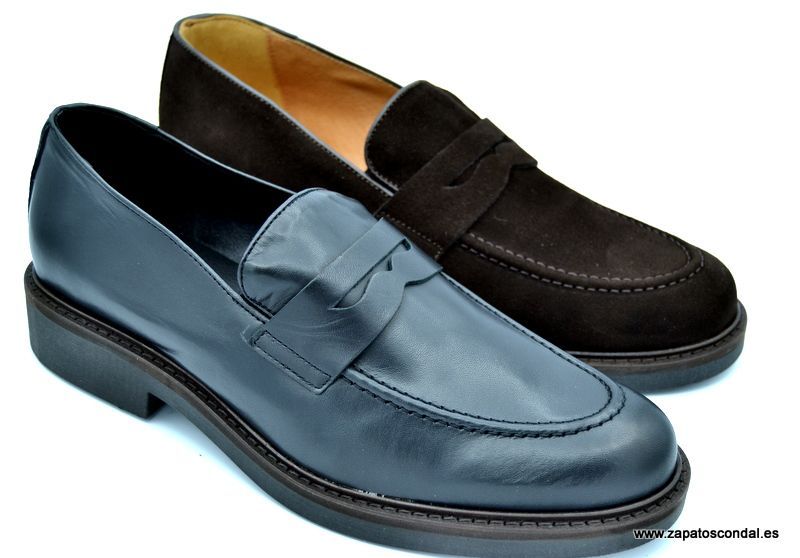 Benson modelo 83646. Mocasín de vestir fabricado en piel. Forro traspirable y plantilla de piel. Suela de caucho antideslizante. Disponible en piel serraje marrón y piel napa negra.