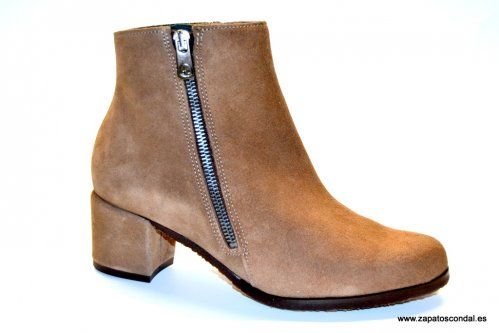 CONDAL 9640. Botín de piel serraje en color tostado taupe. Forro térmico textil. Planta de piel y tacón de 4,5cm. forrado. Suela de crepé muy flexible.