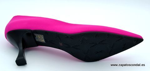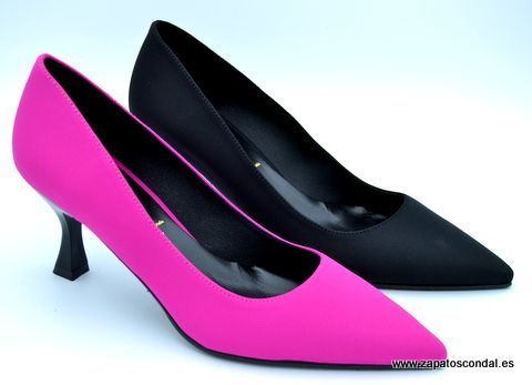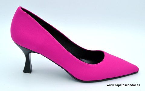 Daniela Vega modelo 2204. Salón de raso forrado. Planta de piel. Suela de caucho con tacón de 6,5cm. Disponible en fuxia y negro.