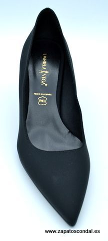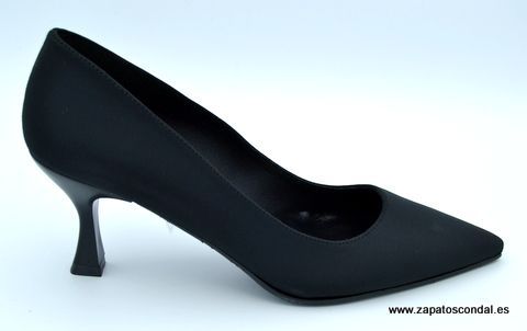 Daniela Vega modelo 2204. Zapato salón de raso. Planta de piel. Tacón de 6,5cm. Disponible en negro y fuxia.