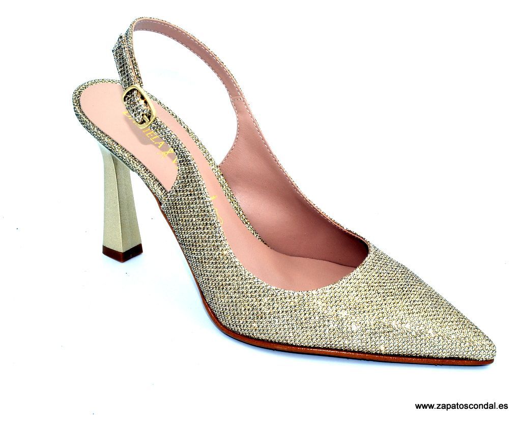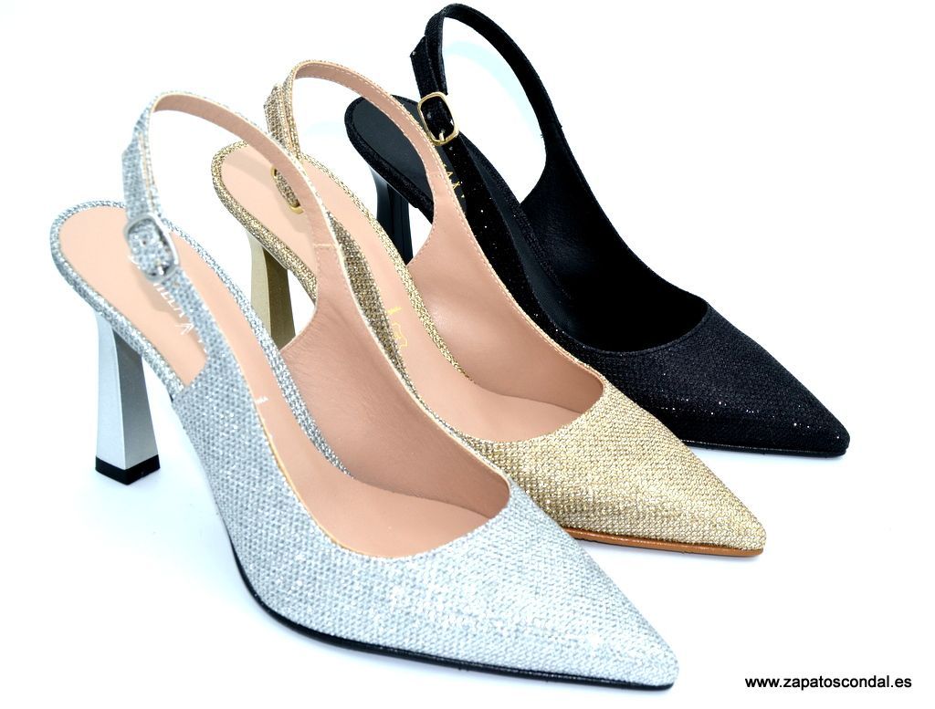 Daniela Vega modelo 2226-P. Zapato salón de tejido Lux metalizados. Tacón de 8cm. Plantilla de piel. Disponible en tejido negro, plata y platino.