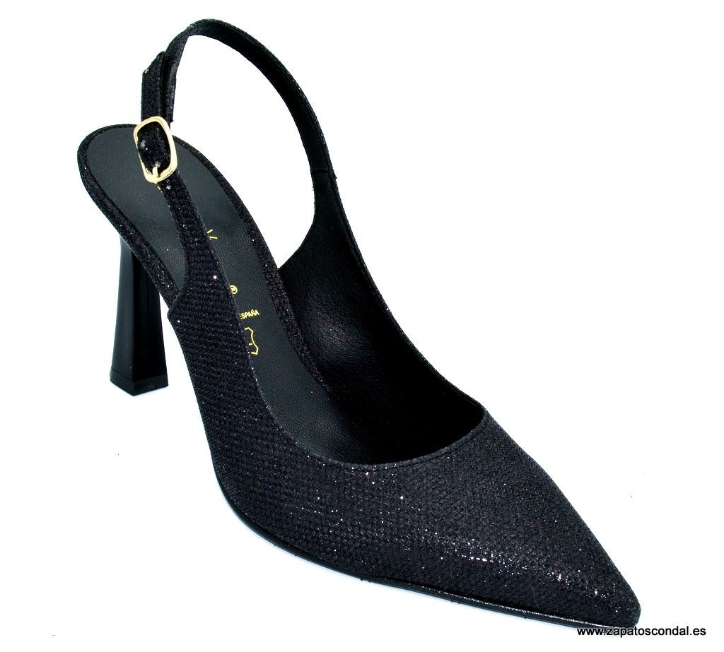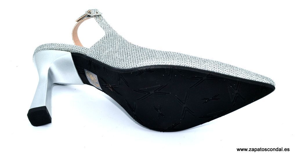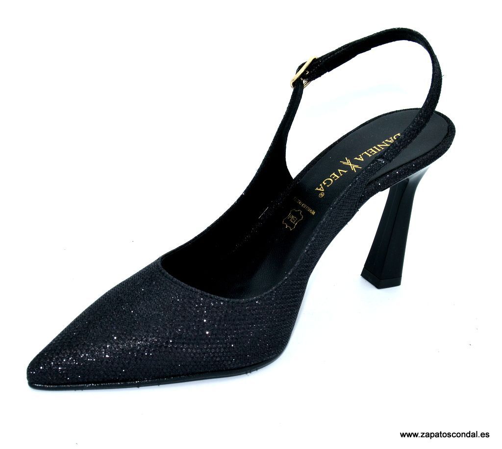 Daniela Vega modelo 2226-P. Zapato salón de tejido lux rejilla brillos. Planta de piel. Suela de caucho con tacón de 8cm. Disponible en negro, plata y platino. Fabricado enn Elche.