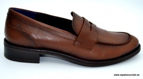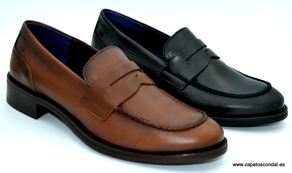 Dorking modelo D8710. Zapato mocasín de piel con adorno antifaz en la pala. Planta de piel, forro micro traspirable. Suela de caucho con tacón bajo. Disponible en negro y marrón nuez. Gran calidad y comodidad. Fabricado en Arnedo-España por Fluchos.