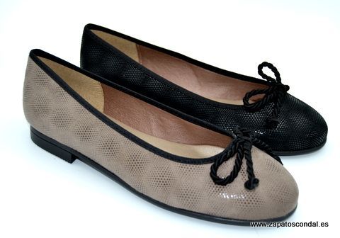 Duit modelo 4000. Zapato manoletina de piel grabada. Forro micro con planta de piel. Suela de caucho super flex. Disponible en negro y taupe.