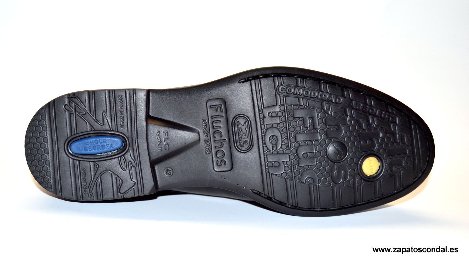 Fluchos modelo 8468. Zapato blucher con puntera recta fabricado en piel. Forro micro. Suela P.U. de gran ligereza. El tradicional confort fluchos en un zapato de vestir.
