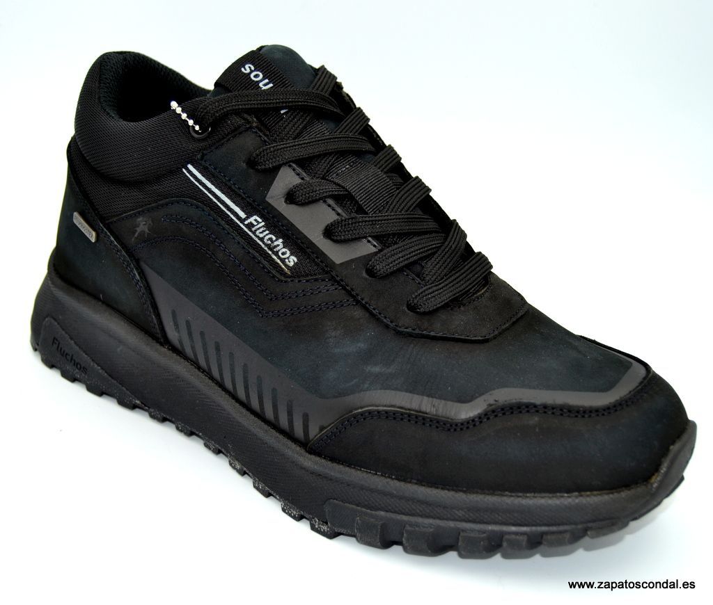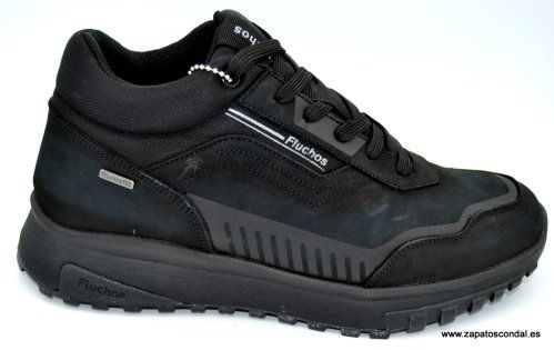Fluchos modelo F1840. Bota de piel repelente al agua. Forro textil con membrana resistente al agua. Waterproof. Suela de caucho antideslizante especial treking. Calidad y comodidad Fluchos en un artículo sport para campo y ciudad. Disponible en negro y color marrón piedra.