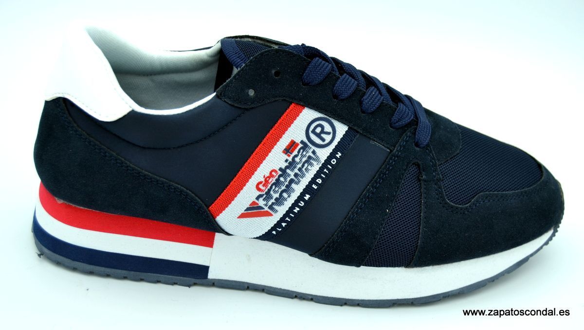 Geographical Norway modelo Miguel Angel. Deportivo textil nylon con suela bicolor muy ligera. Disponible en azul marino.