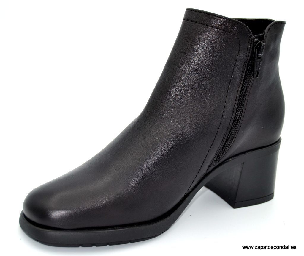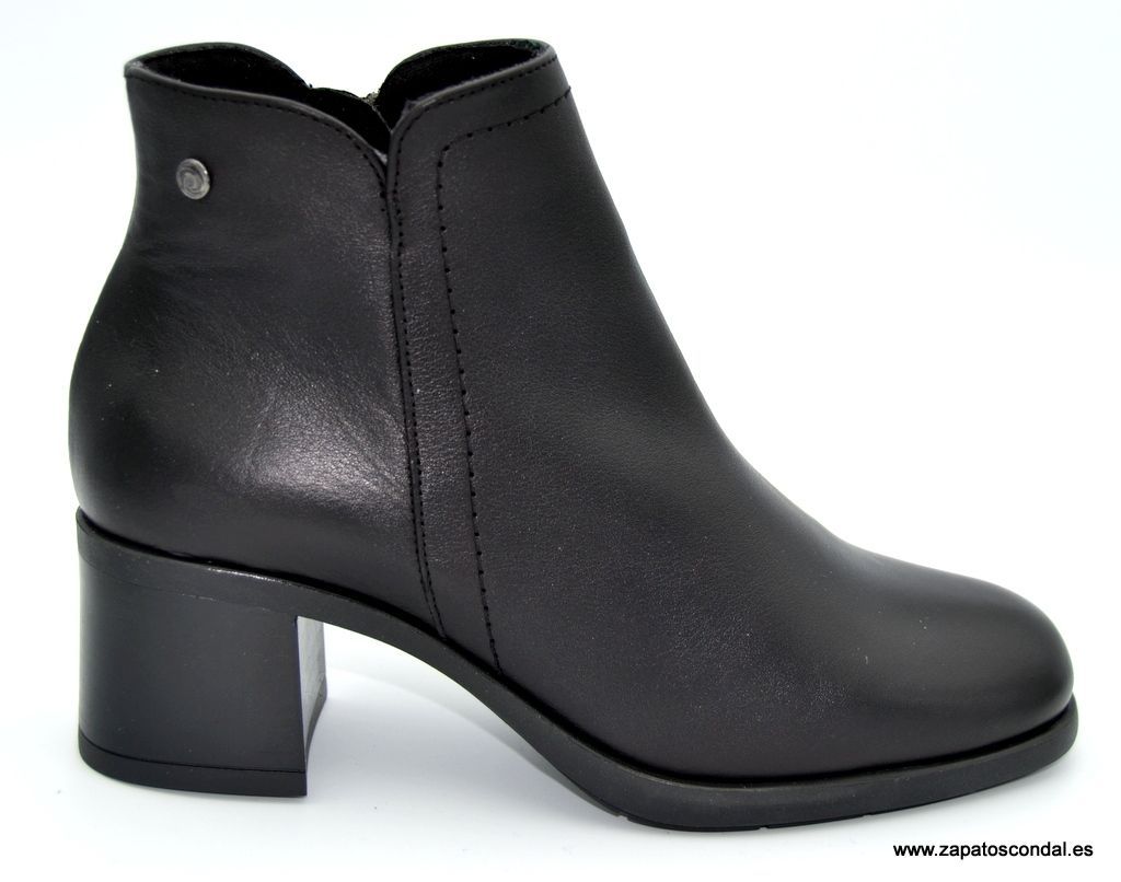 Kaola modelo 3850. Botín de piel con cremallera lateral. Suela de caucho con tacón de 5cm. Forro térmico textil. Plantilla de piel. Disponible en negro y cuero.
