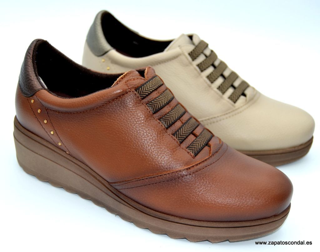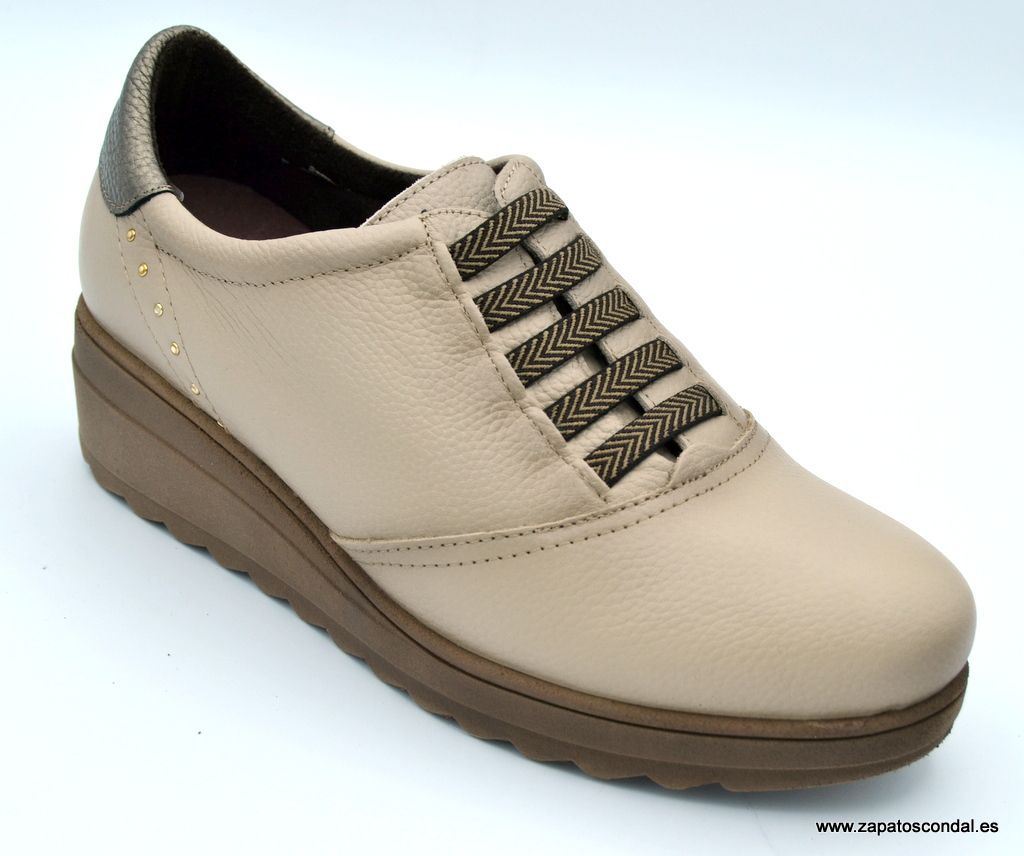 Kaola modelo 5049. Zapato de piel con elásticos en la pala. Forro térmico textil. Plantilla de piel confort. Suela de caucho con muy buen agarre. Cuña de 4cm. Disponible en color cuero y topo. Fabricado en Elche- Alicante.Kaola 5049 topo.