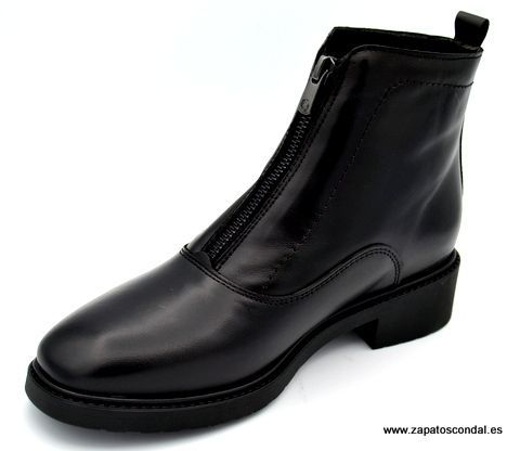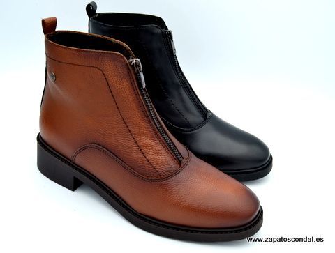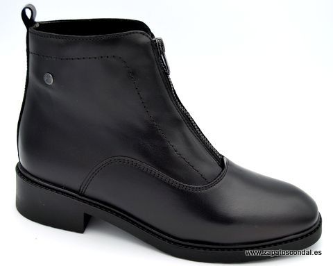 Kaola modelo 7150. Botín de piel con cremallera central. Forro micro muy confortable. Planta de piel. Suela de caucho de gran agarre y duración. Tacón bajo. Disponible en cuero y negro.
