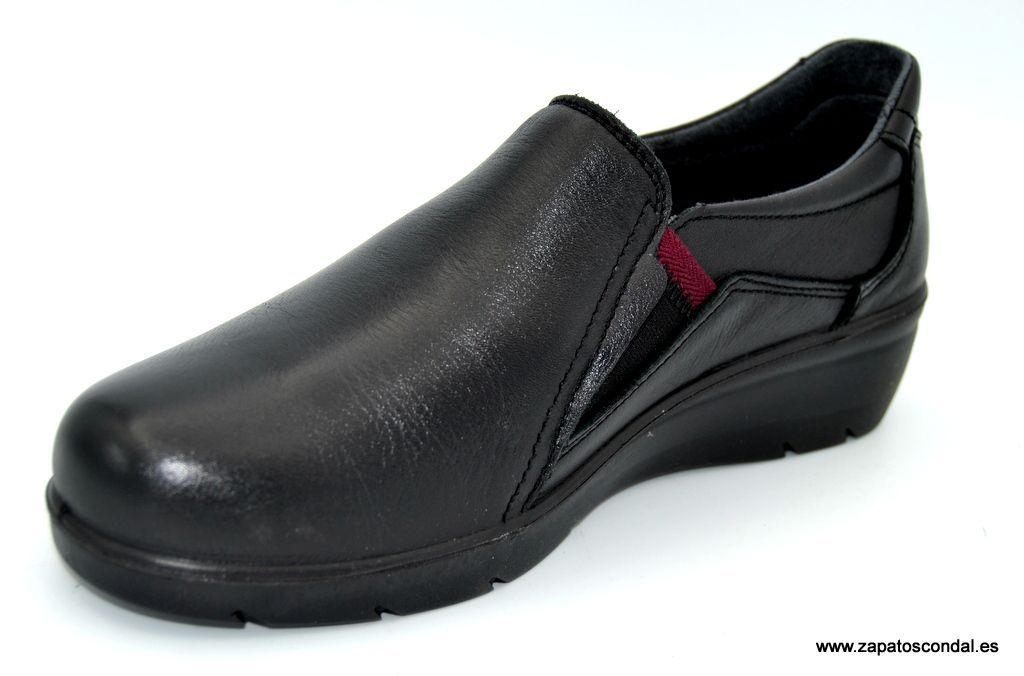 Laura Azaña modelo LA26801. Zapato mocasín de piel con elásticos en la pala. Forro traspirable. Plantilla confort extraible. Suela ligera con cuña de 4cm. Disponible en negro y coñac.