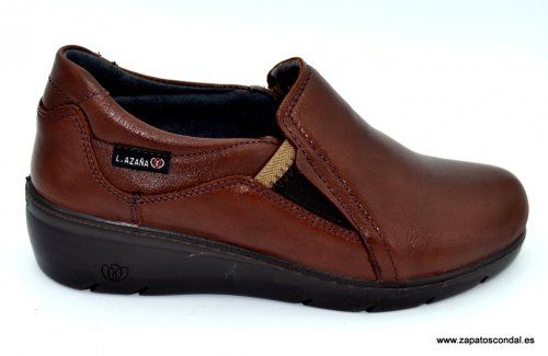 Laura Azaña modelo LA26801. Zapato mocasín de piel con elásticos laterales. Forro traspirable. Plantilla confort. Suela inyectada con cuña de 4cm. Calidad y comodidad. Fabricado en Toledo-España.