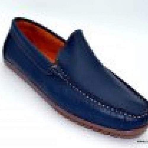 Línea Púrpura modelo 81460. Zapato mocasín de piel y forro de piel. Planta de piel. Suela de caucho cosida. Disponible en azul marino, ocre y cuero.