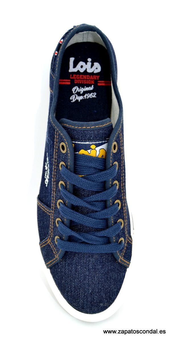 Lois modelo 61253. Zapatilla de lona vaquera con cordones. Interior textil. Suela de caucho vulcanizado.