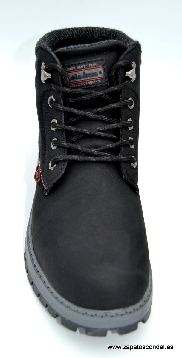 Lois modelo 64104. Bota de cordones en material sintético impermeable color negro. Forro textil. Suela de caucho.