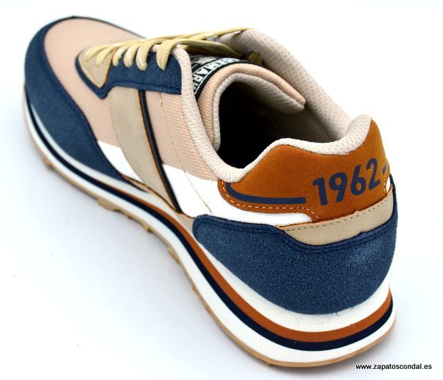 Lois modelo 64244. Deportivo Lois de cordones combinado en nylon beige y marino. Forro textil. Suela de caucho. Deportivo urbano muy combinable y original.