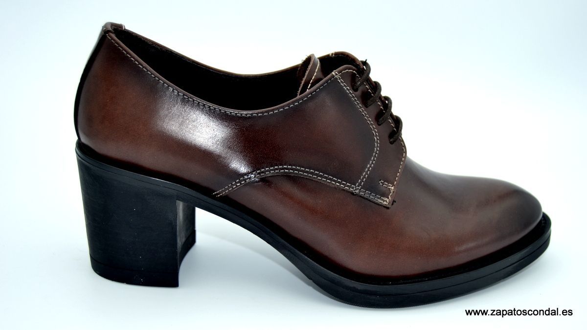 Luis Gonzalo modelo 5015M. Zapato de mujer de piel con cordones. Forro de piel. Planta de piel cosida. Suela de caucho. Calidad y estilo en un zapato fabricado en Almansa, España. Disponible en marrón niger.