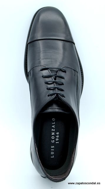 Luis Gonzalo modelo 8014HC. Zapato de cordones con adorno puntera recta. Forro de piel. Suela de cuero cosida con media suela de caucho. Plantilla extraible. Disponible en negro. Gran calidad y elegancia. Fabricado en Almansa- España.
