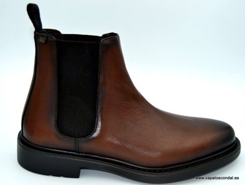 Luis Gonzalo modelo 8175H. Bota de piel con elásticos laterales. Forro de piel. Plantilla confort. Suela ligera cosida. Disponible en color marrón caoba. Fabricado en Almansa- España.