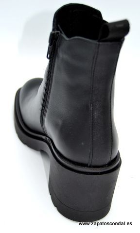 María Jaén modelo 5067. Botín de horma actual fabricado en piel por María Jaén de Elche. Todo piel, Suela de caucho con plataforma y tacón de 5cm.