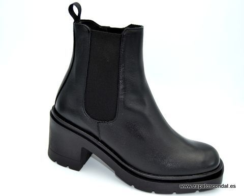 BOTÍN DE PIEL CON ELÁSTICOS LATERALES Y TACÓN DE 5CM
