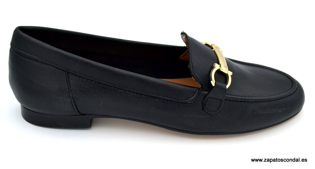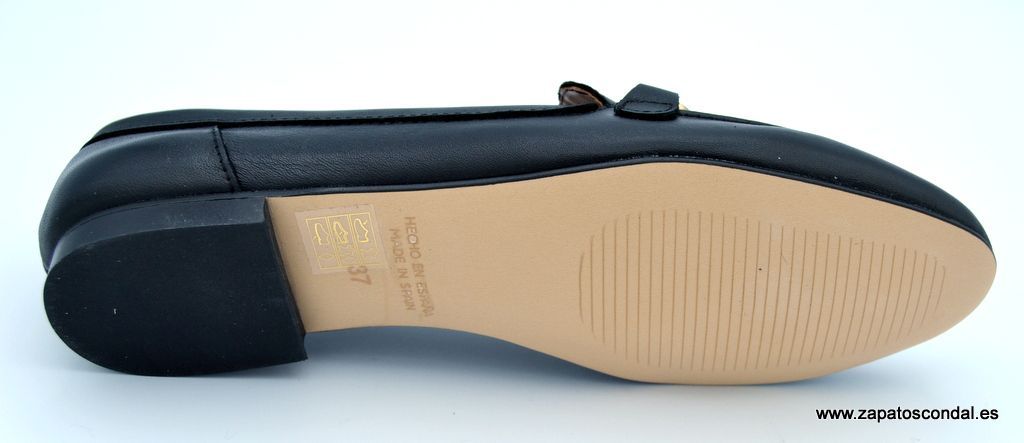 María Jaén modelo 8005X. Zapato mocasín de piel con bonito adorno metálico en la pala. Gran calidad y comodidad. Fabricado en España. Disponible en negro y metalizado cesio.