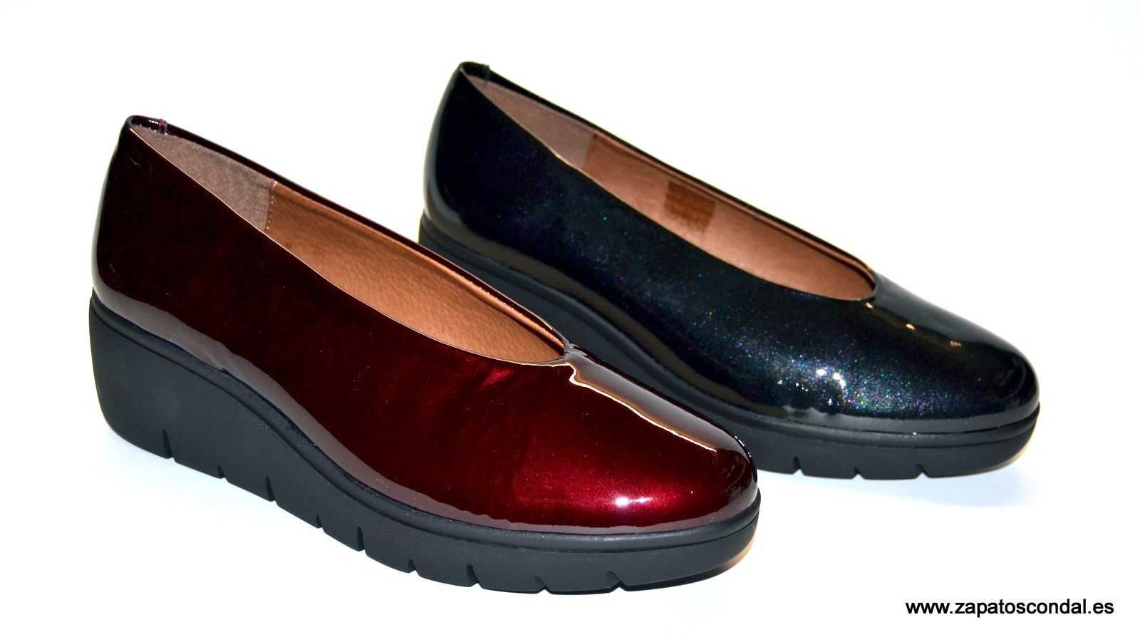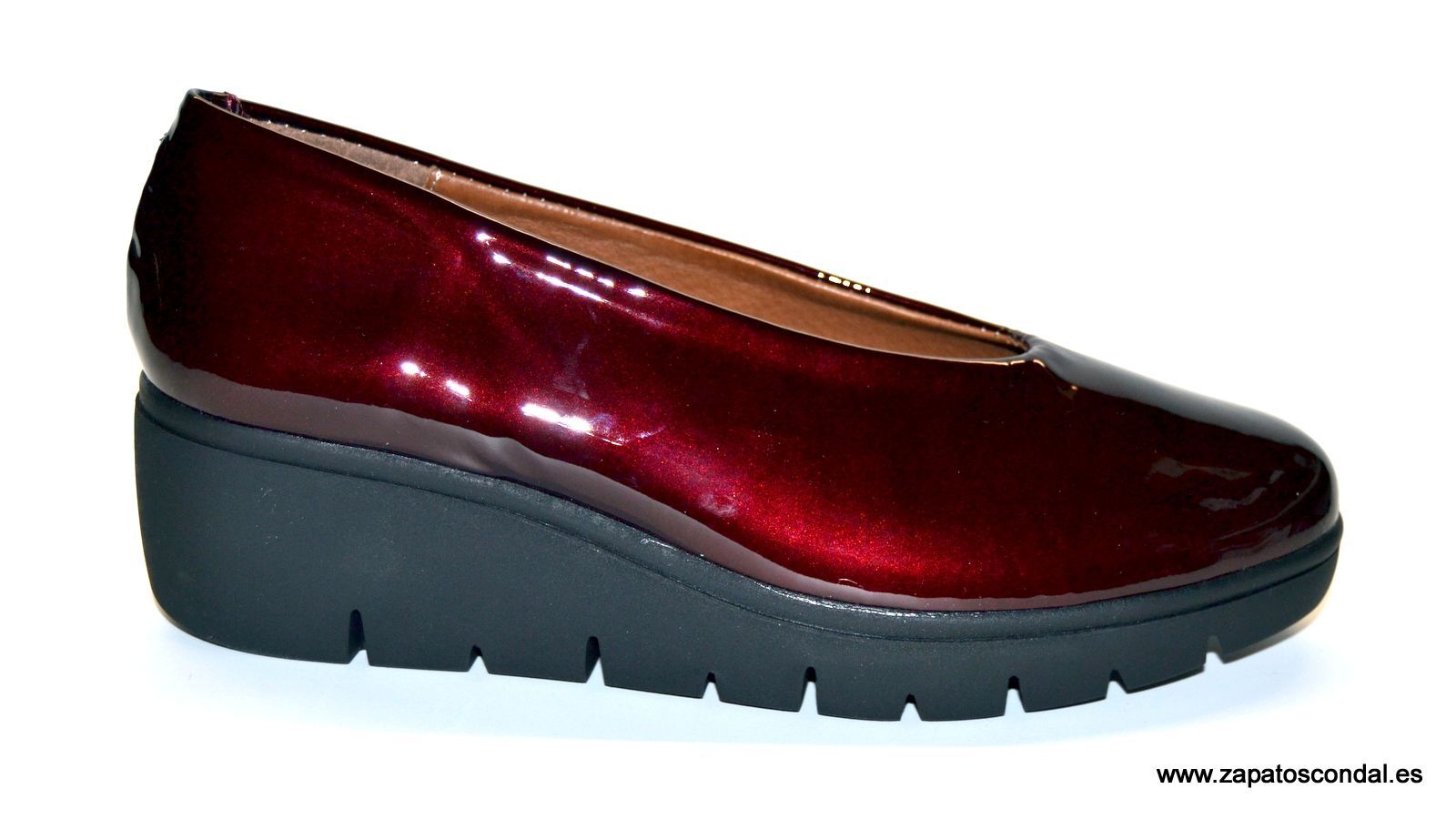 MARÍA JAEN MODELO 9576N. Zapato salón de de piel charol. Forro de piel. Suela cuña de caucho. Planta acolchada. Muy cómodos. Disponibles en negro y burdeos.