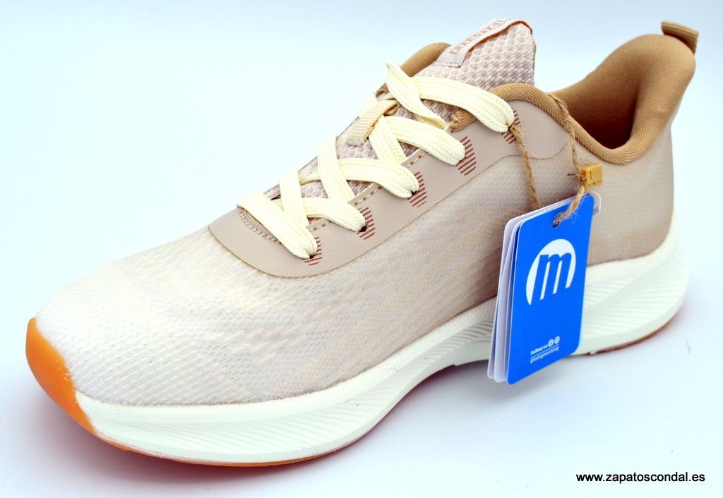 Mustang modelo 60802. Deportivo de mujer con cordones. Tejido traspirable. Forro textil. Plantilla confort. Suela muy ligera. Horma muy cómoda. Sistema calza fácil. Disponible en negro y arena.