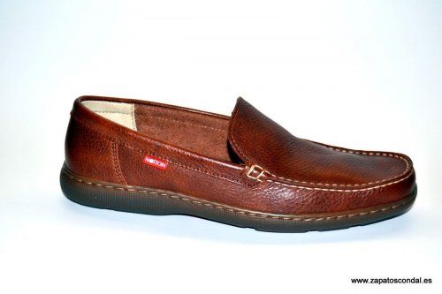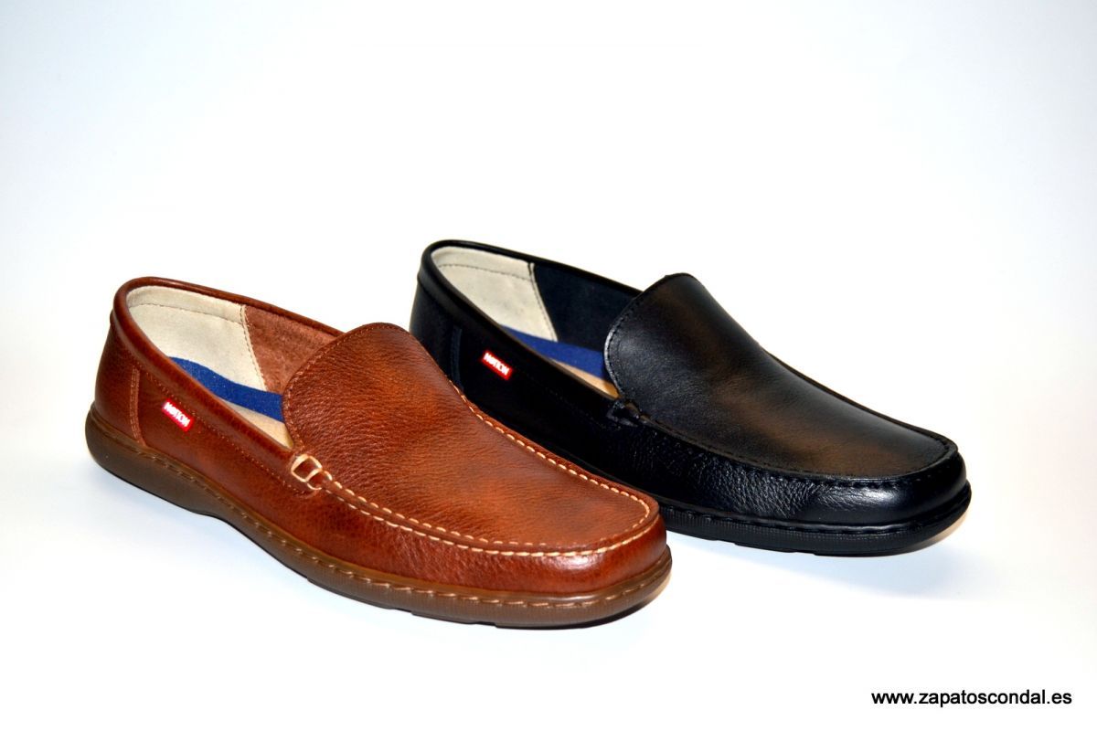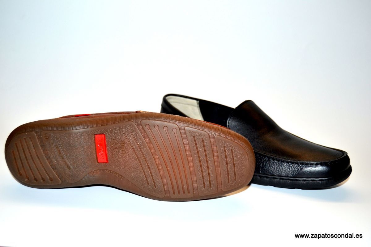 Notton 1547. Mocasín de piel con plantilla anatómica confort. Horma ancho especial. Suela de caucho cosida. Disponible en marrón líbano y negro. Muy flexible. Gran calidad.