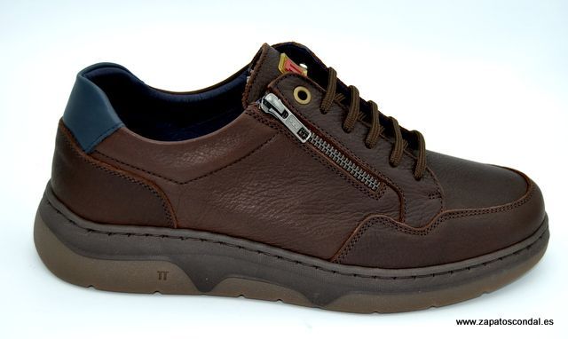 Notton modelo 1617. Zapato deportivo de piel engrasada con cordones y cremallera. Forro traspirable. Plantilla confort extraible. Suela de caucho cosida de gran resistencia. Muy cómodos.