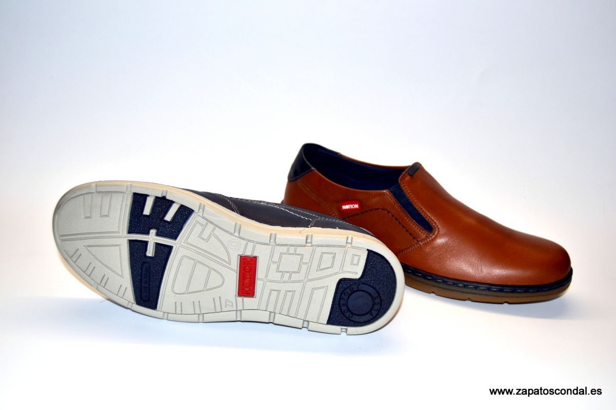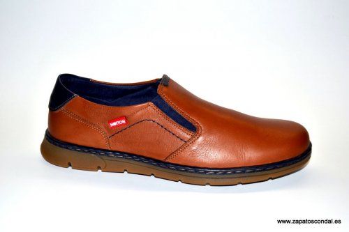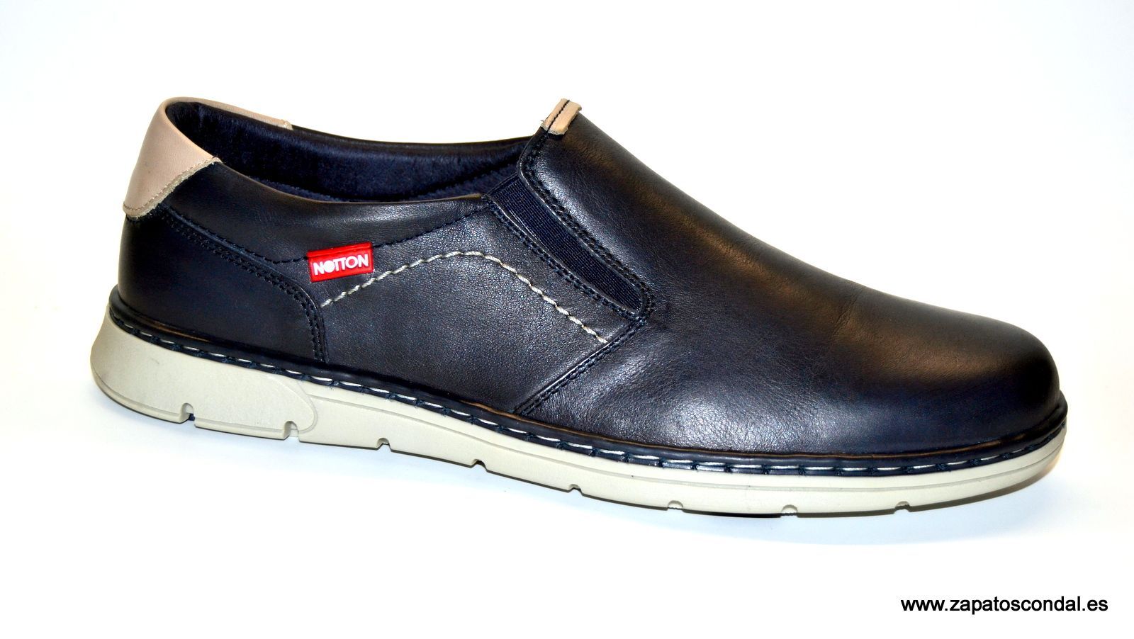 Notton modelo 176. Zapato mocasín de piel con elásticos en la pala para un ajuste perfecto. Horma confort muy cómoda. Suela cosida de caucho de gran calidad. Disponibles en marrón líbano y azul marino.