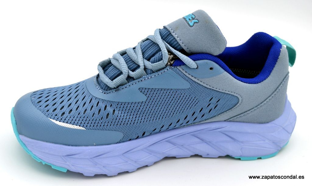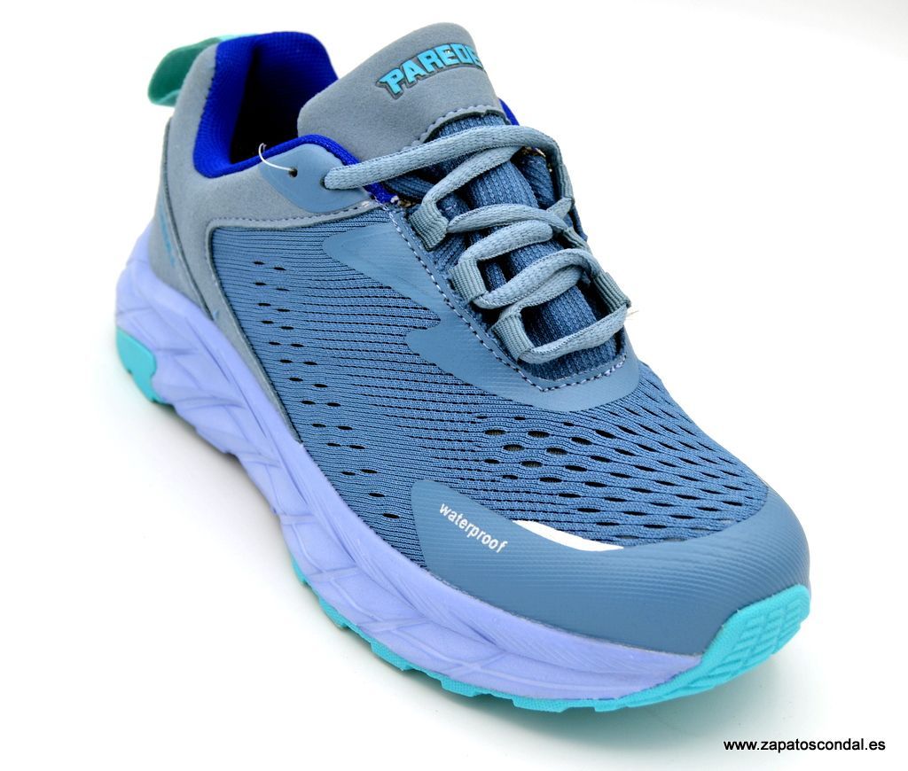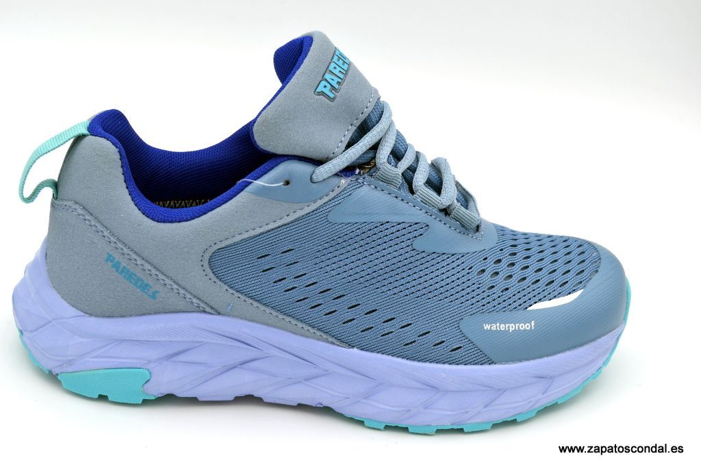 Paredes modelo LD25539.  Deportivo de mujer de tejido especial resistente al agua. Forro traspirable textil. Plantilla confort memory foan. Suela extra ligera de buen agarre. Disponible en azul turquesa. Fabricada por Paredes de Elche- Alicante, mas de 70 años de experiencia.