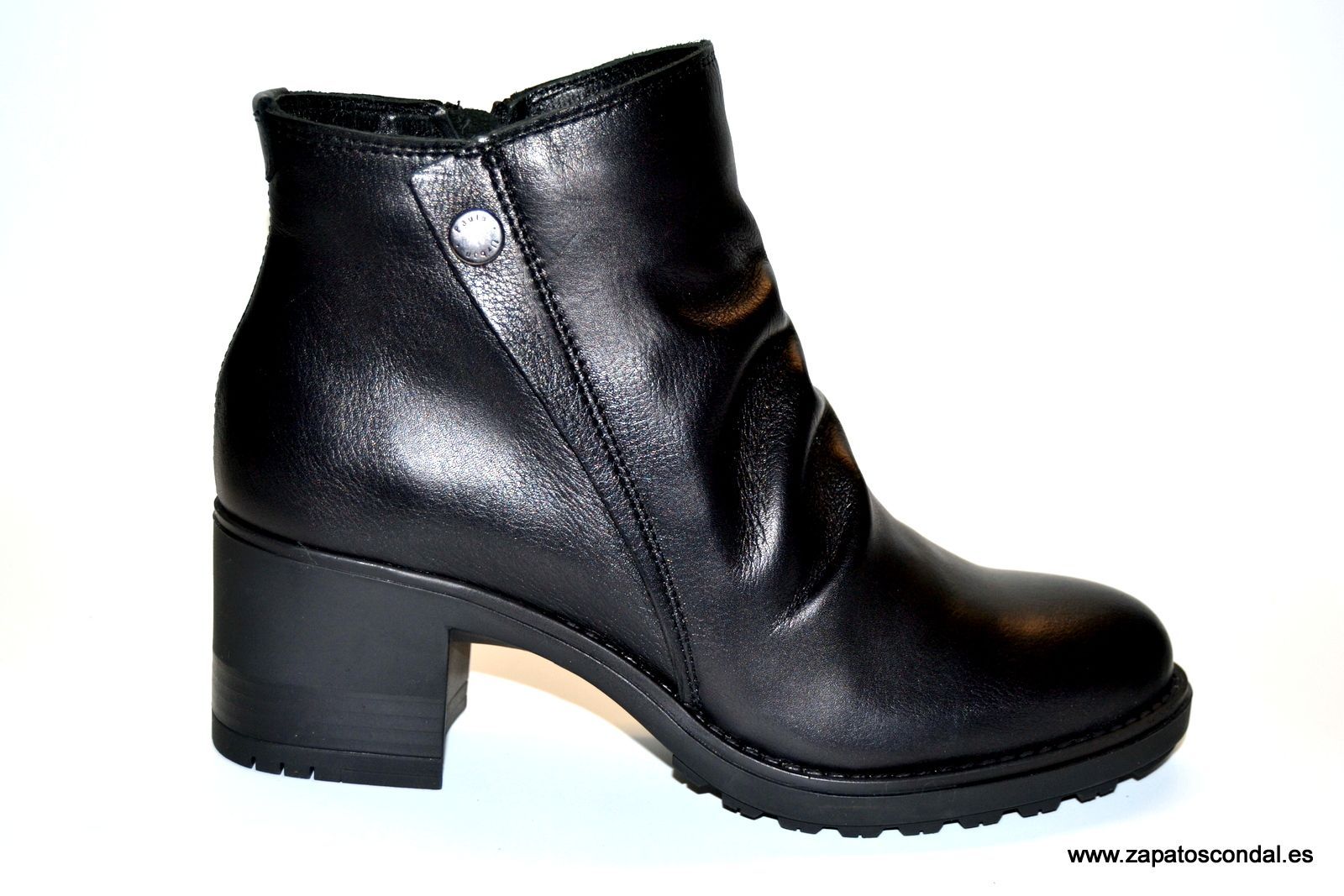 BOTÍN DE PIEL CON TACÓN ANCHO DE 4,5CM.