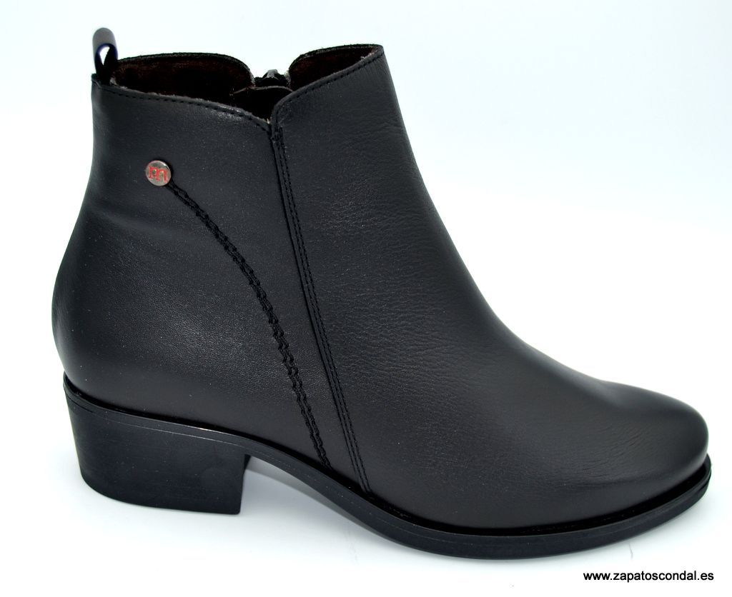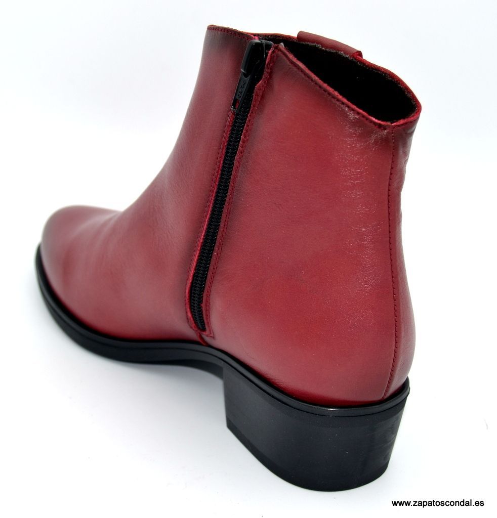 Pepe Menargues modelo 20410. Botín de piel con cremallera lateral. Forro térmico textil. Plantilla confort extraible. Suela de caucho con tacón de 3,5cm. Disponible en negro y burdeos.