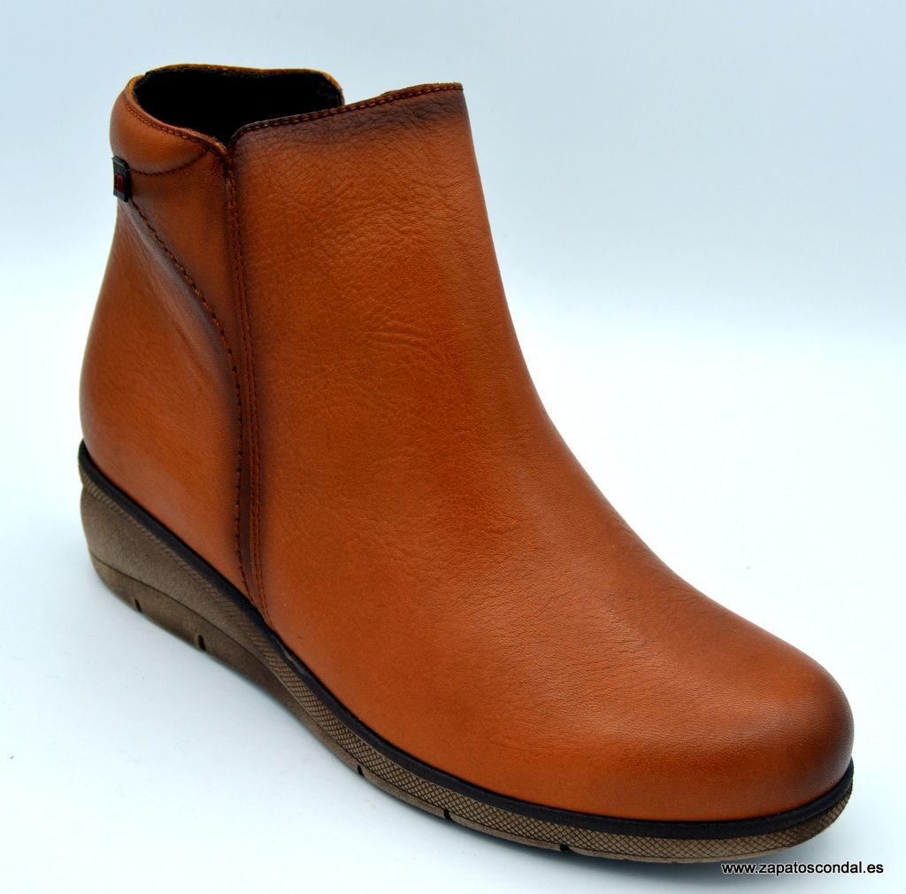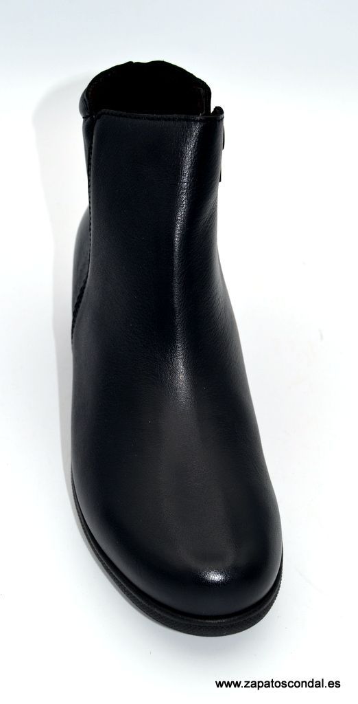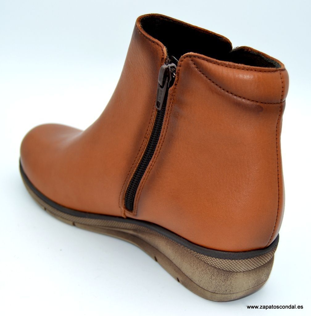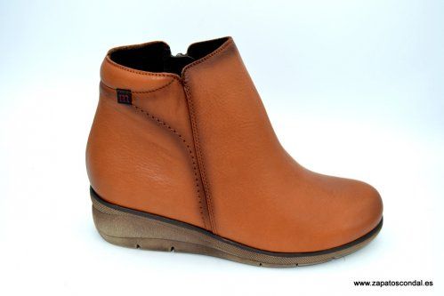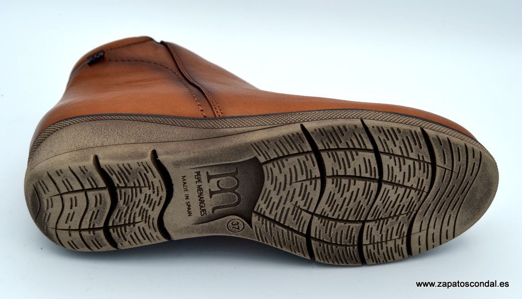 Pepe Menargues modelo 20649. Botín de piel con cremallera. Forro textil térmico traspirable. Horma confort con plantilla extraible. Suela de caucho con cuña de 4cm. Fabricado en España.