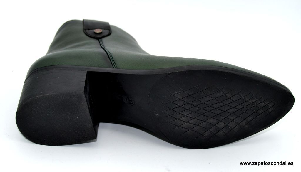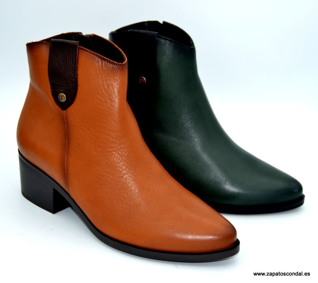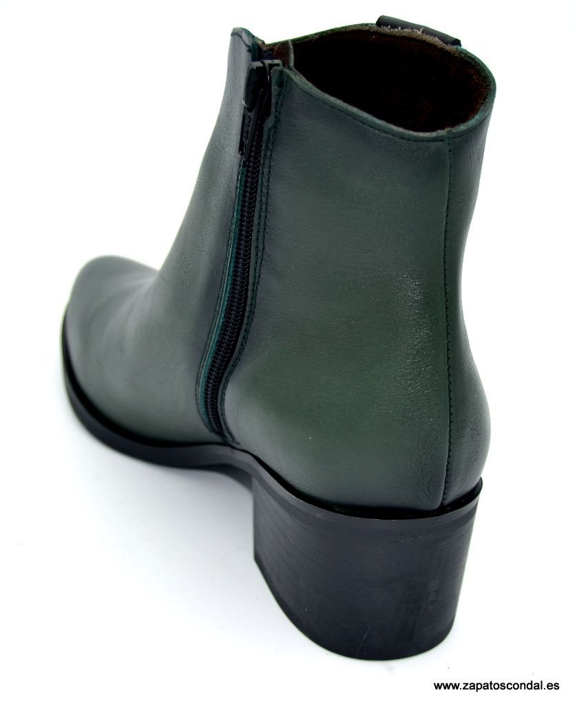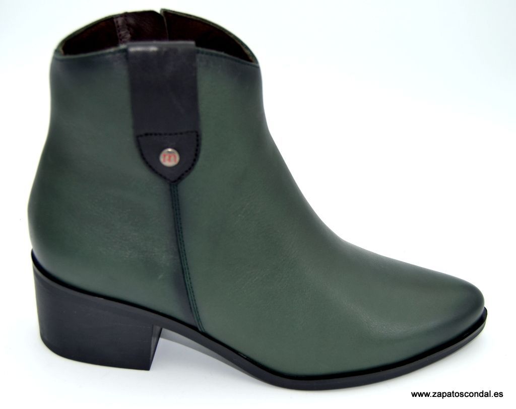 Pepe Menargues modelo 21240. Botín de piel con tacón de 4cm. Horma tejana. Forro térmico traspirable. Plantilla extraible. Suela de caucho. Disponible en verde bosque y cuero.