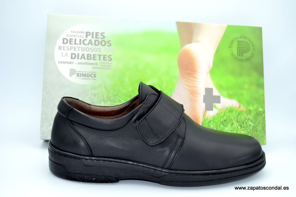 PRIMOCX 6984. Zapato especial confort fabricado en piel. Ajuste al empeine con velcro. Forro de piel. Plantilla extraible de gran calidad. Suela cosida de caucho. Horma ancha para pies delicados. Respetuoso con el pie diabético que requiere unas pieles especialmente suaves y una horma muy cómoda que evite rozaduras.