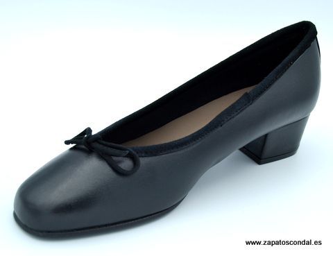 Roldan modelo 2011. Zapato salón de piel napa en ancho especial. Forro térmico textil.  Planta de piel. Tacón de 3cm. forrado en piel.  Adorno lazo en ante negro con vivos del mismo material.