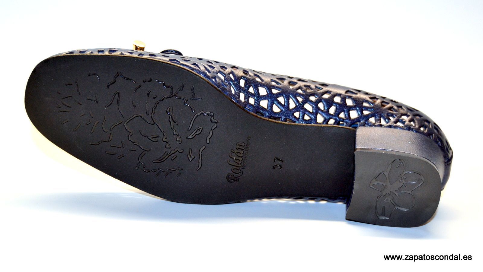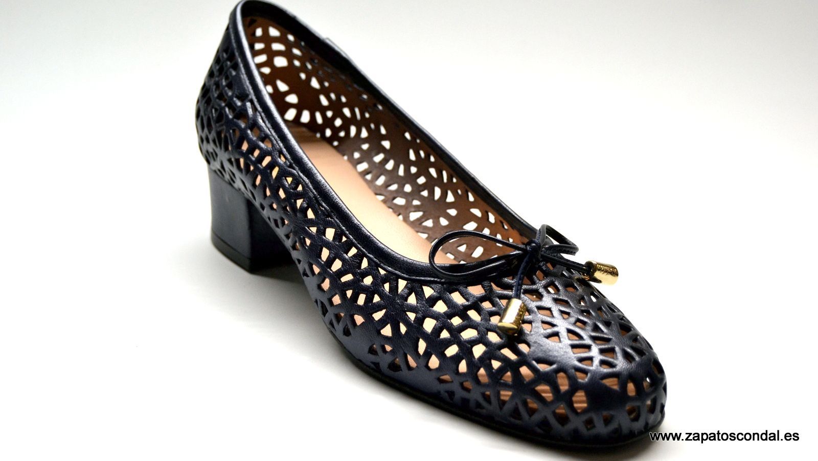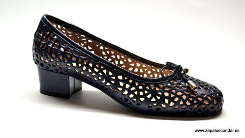 Roldán modelo 2307. Zapato salón con lazo. Piel calada. Forro de piel. Suela de caucho. Tacón 4cm. forrado en piel. Horma confort de ancho especial. Disponibles en azul marino ligeramente metalizado y beige Yvory. Muy cómodos.