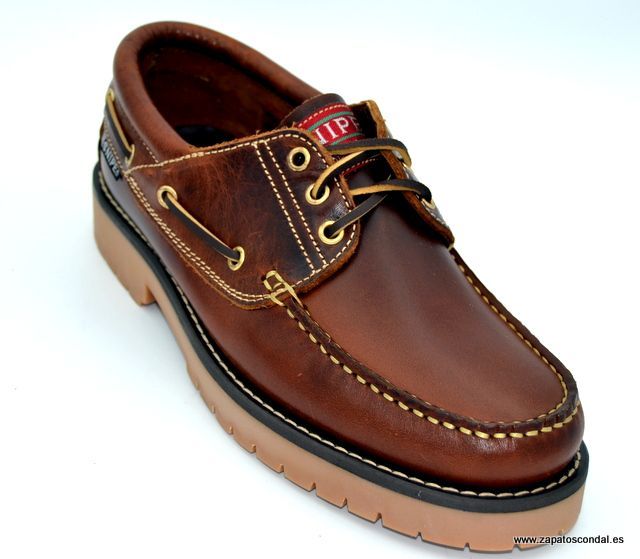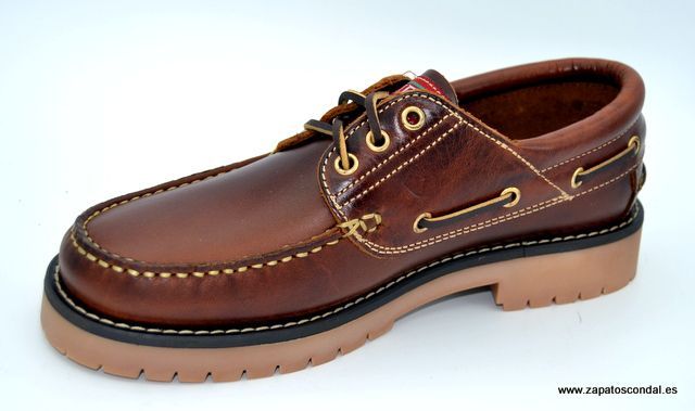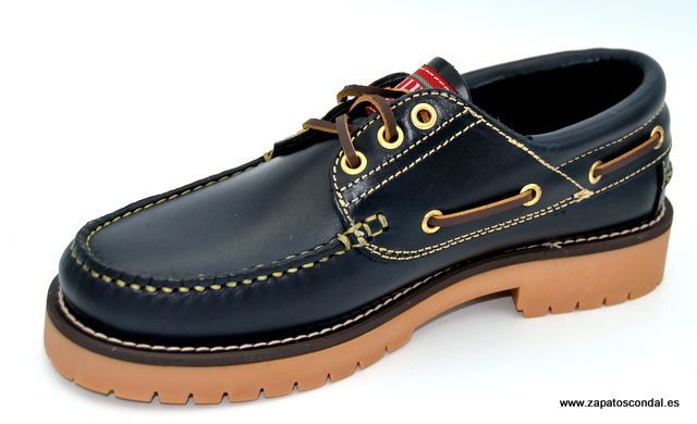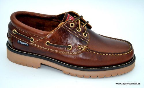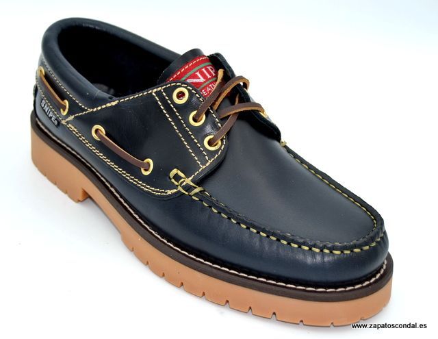 Snipe modelo 21201. Zapato naútico de piel, forro de piel, suela de goma cosida. Disponible en azul marino y marrón seahorse.