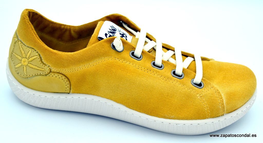 Sunni Sabbi modelo Oshima. Zapato deportivo de lona de algodón ecológico. Cordones elásticos. Forro textil traspirable. Plantilla anatómica muy confortable. Suela cosida de caucho antideslizante. Fabricado en España. Disponible en rojo, gris azulado, verde menta, verde militar, camel. Calidad y comodidad.