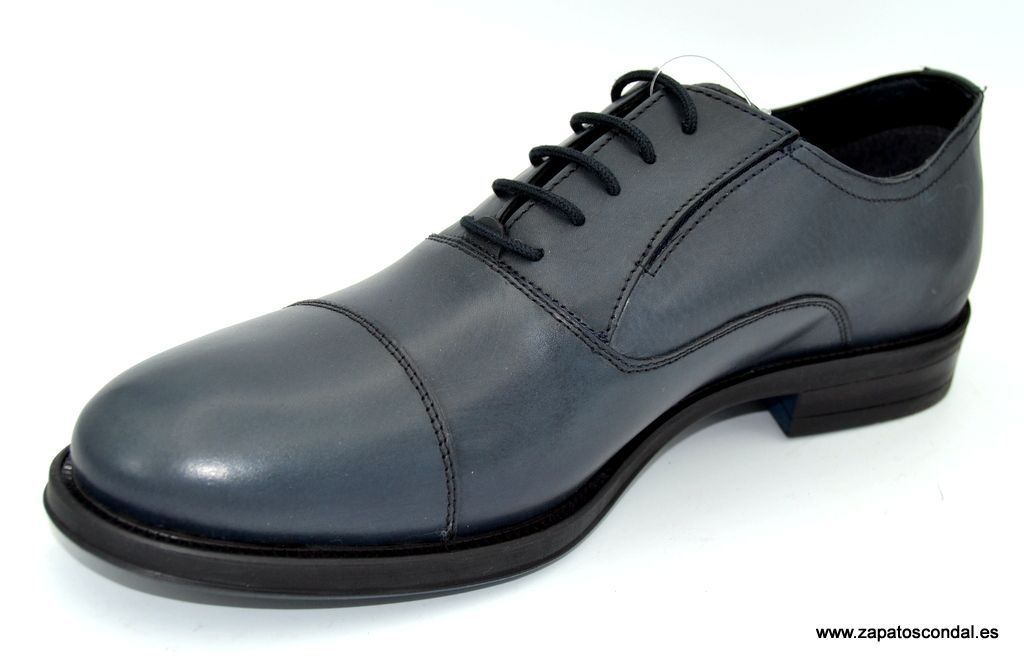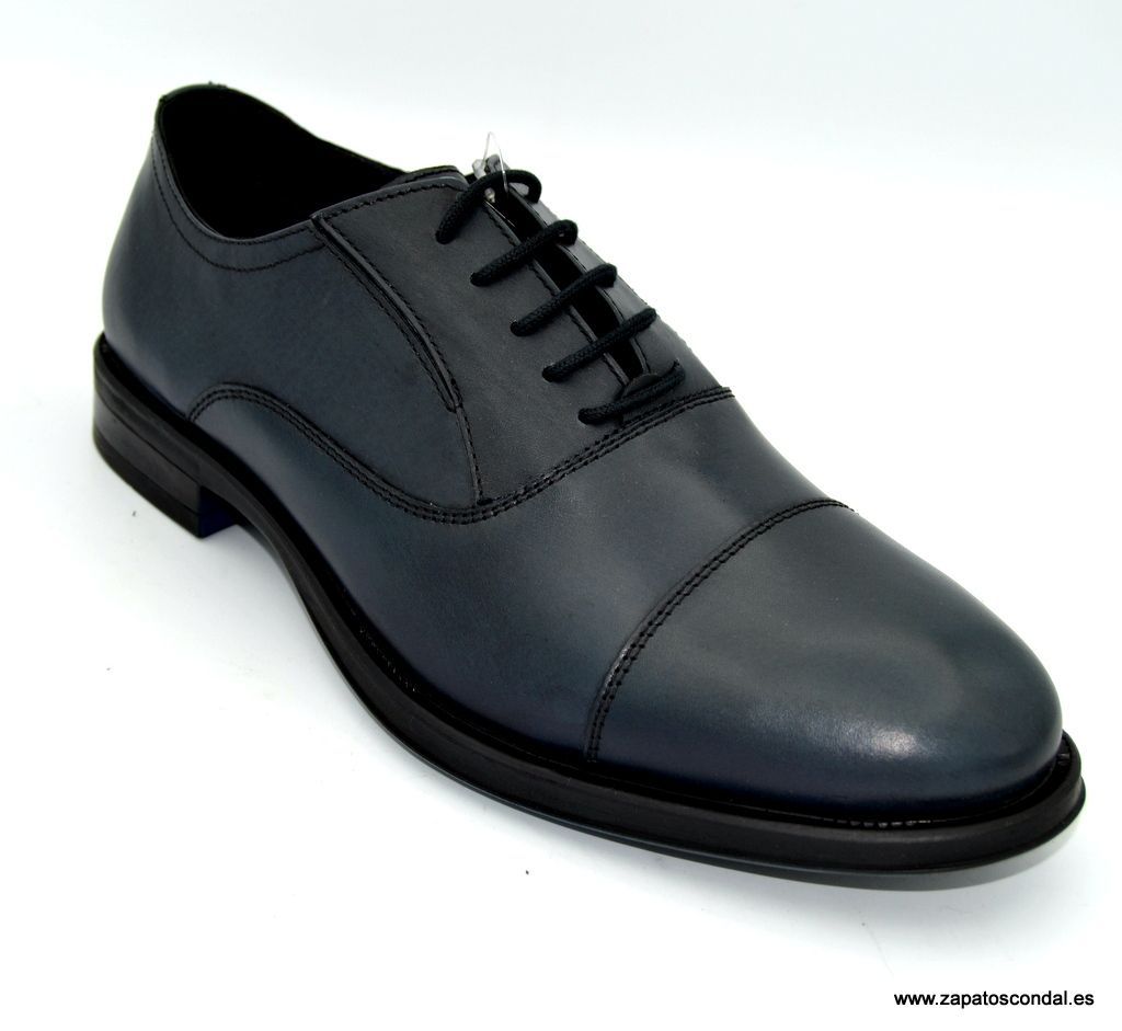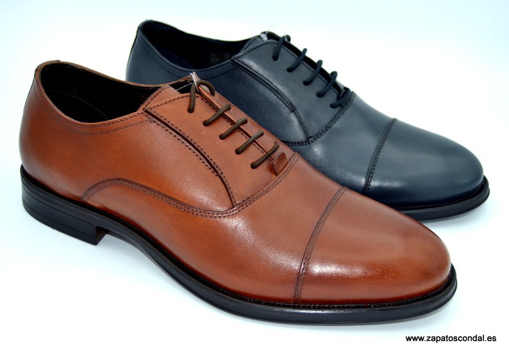 T2in modelo V-414. Zapato de cordones inglés de piel con puntera recta. Forro mixto. Plantilla acolchada. Suela de caucho antideslizante. Disponible en azul y cuero.