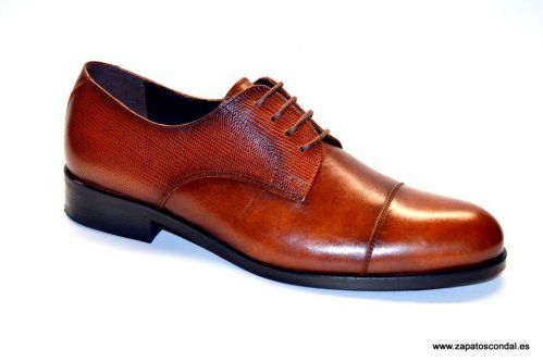 TOLINO MODELO A-8081. Zapato de cordones en piel becerro color cuero de máxima calidad. Forro de piel, plantilla de piel y suela de caucho. Combinado con piel grabada.Calidad y comodidad fabricado en Fuensalida-Toledo.