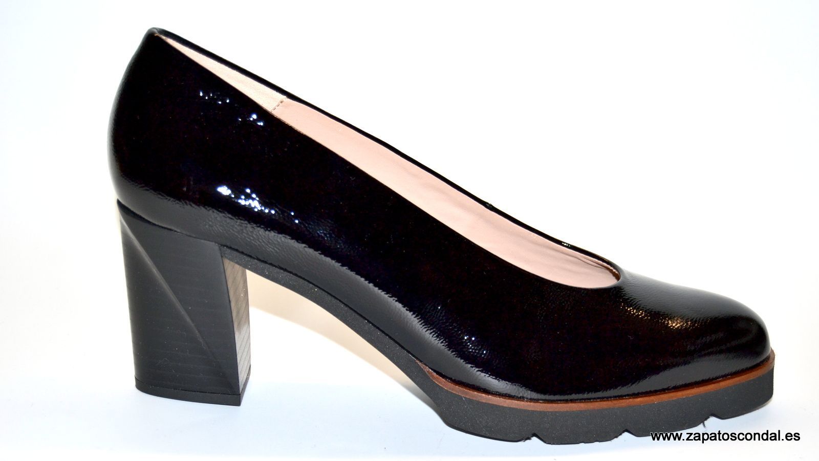 WONDERS L-9440. Salón charol con tacón de 7cm. con suela confort con plataforma. Cómodo y actual. Wonders es una de nuestras marcas estrella, una de las marcas españolas más vendidas en el mundo disponible en Calzados Condal.