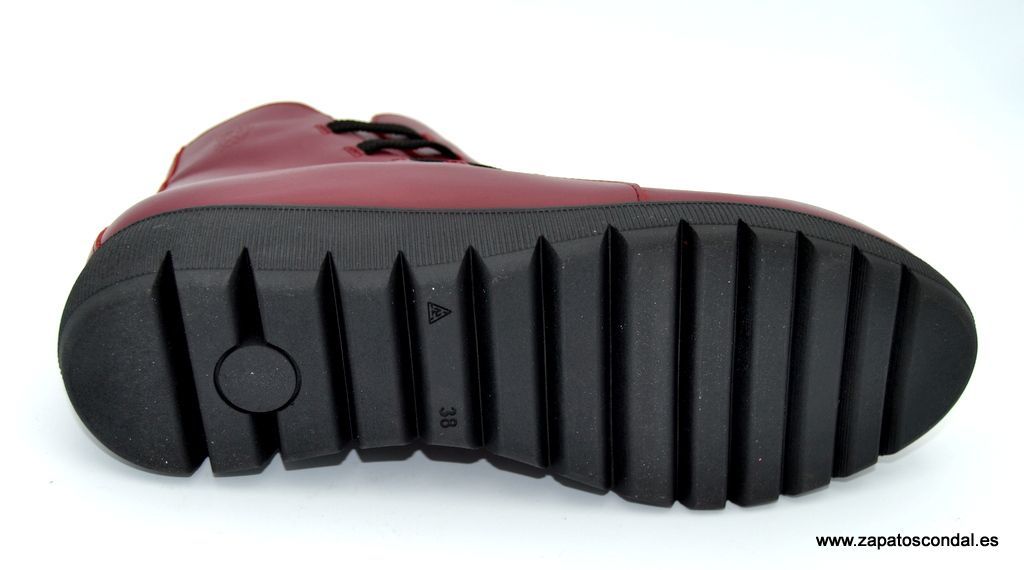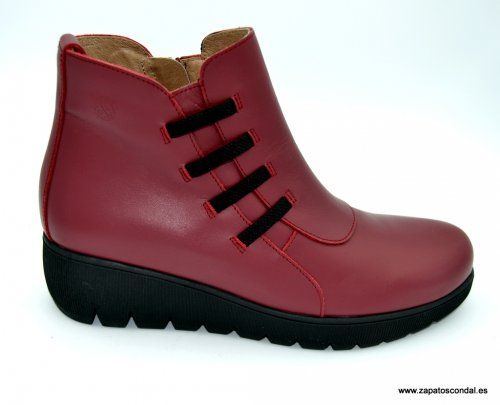 Yokono modelo Atenas 033. Botín de piel con elásticos laterales y cremallera. Forro térmico. Plantilla de piel. Suela de goma con cuña de 5cm. Disponible en negro y burdeos.
